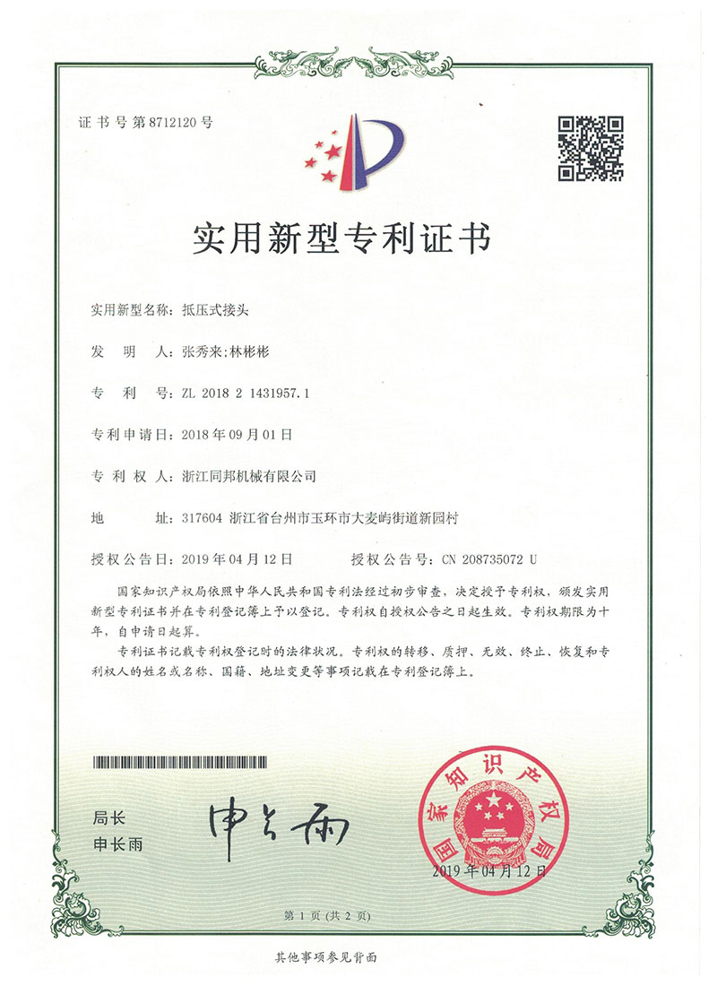 浙江同邦機(jī)械有限公司是一家主要生產(chǎn)液壓流體連接件、卡套式管接頭、過渡接頭、軟管接頭、軟管總成、硬管總成、油缸頭、汽車零部件,集研發(fā)、制造和銷售為一體的綜合性公司。我們擁有專業(yè)的設(shè)備和技術(shù)人員,并且通過IATF16949國際質(zhì)量管理體系認(rèn)證和8項產(chǎn)品專利。